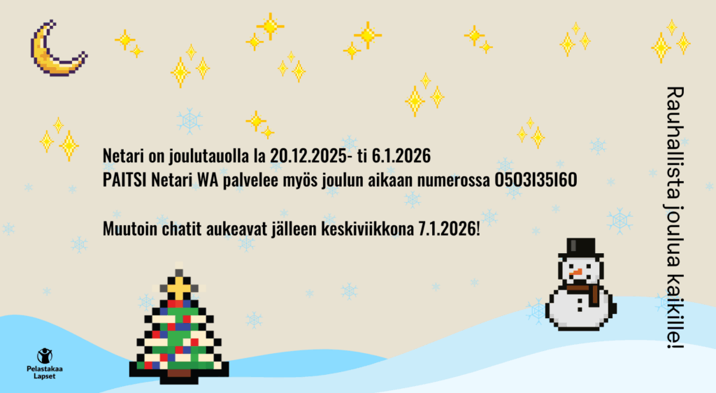 Tervetuloa Pelastakaa Lasten nettinuorisotalo Netariin – täältä löydät tukea ja turvallisia tiloja netissä. Klikkaa mukaan!